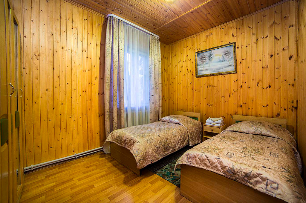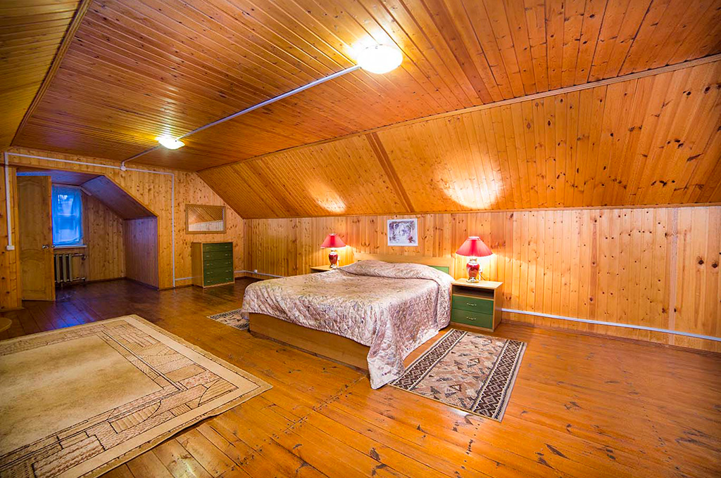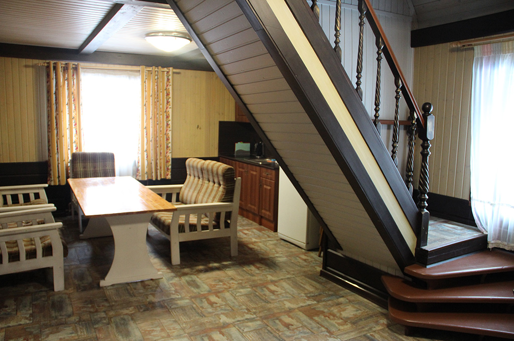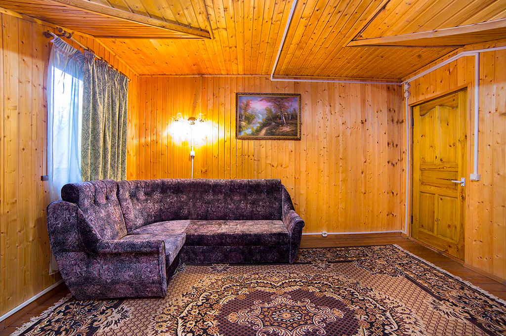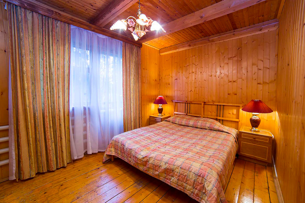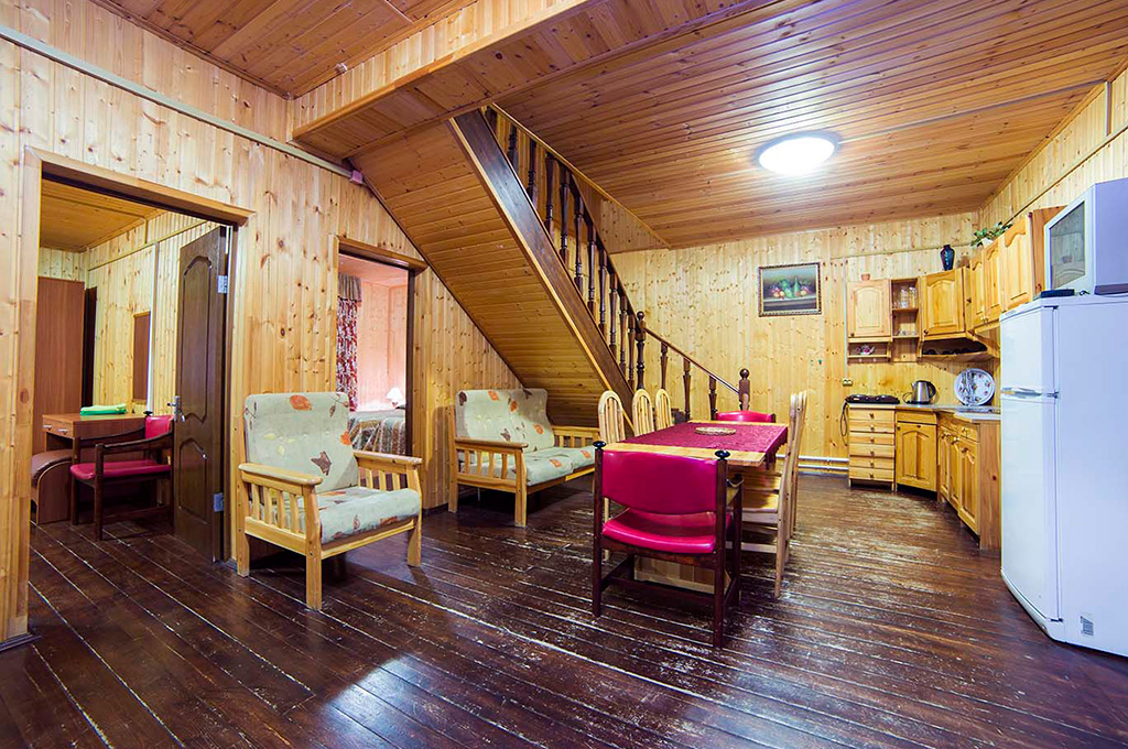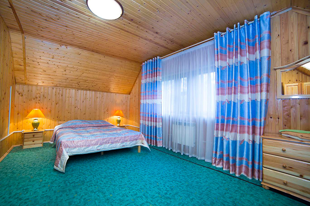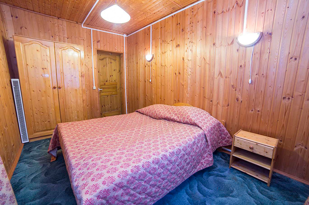 2-местный коттедж VIP. 2-этажный коттедж площадью 150 кв. м. Рассчитан на 2-х человек с возможностью приобретения дополнительных платных мест. Возле коттеджа располагается мангальная зона, качели, одно машиноместо.