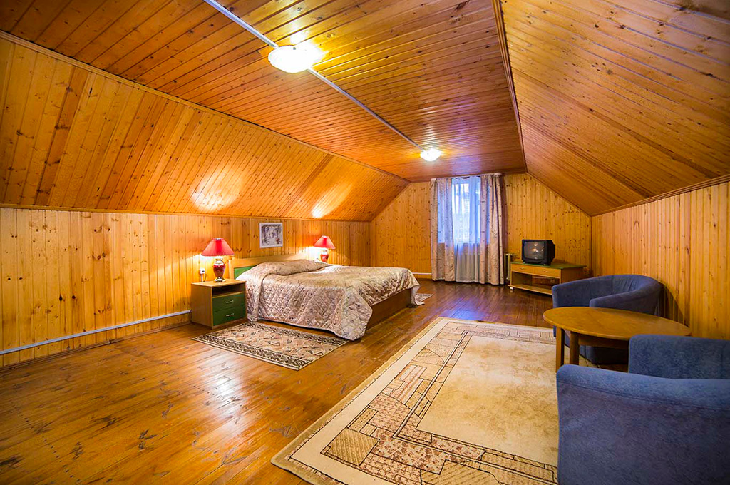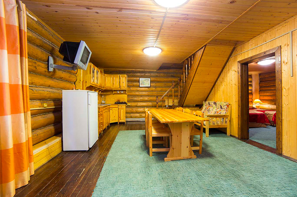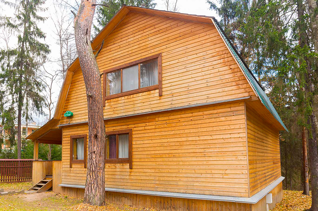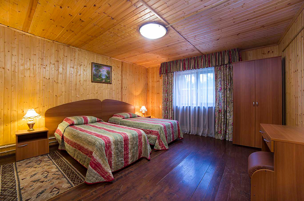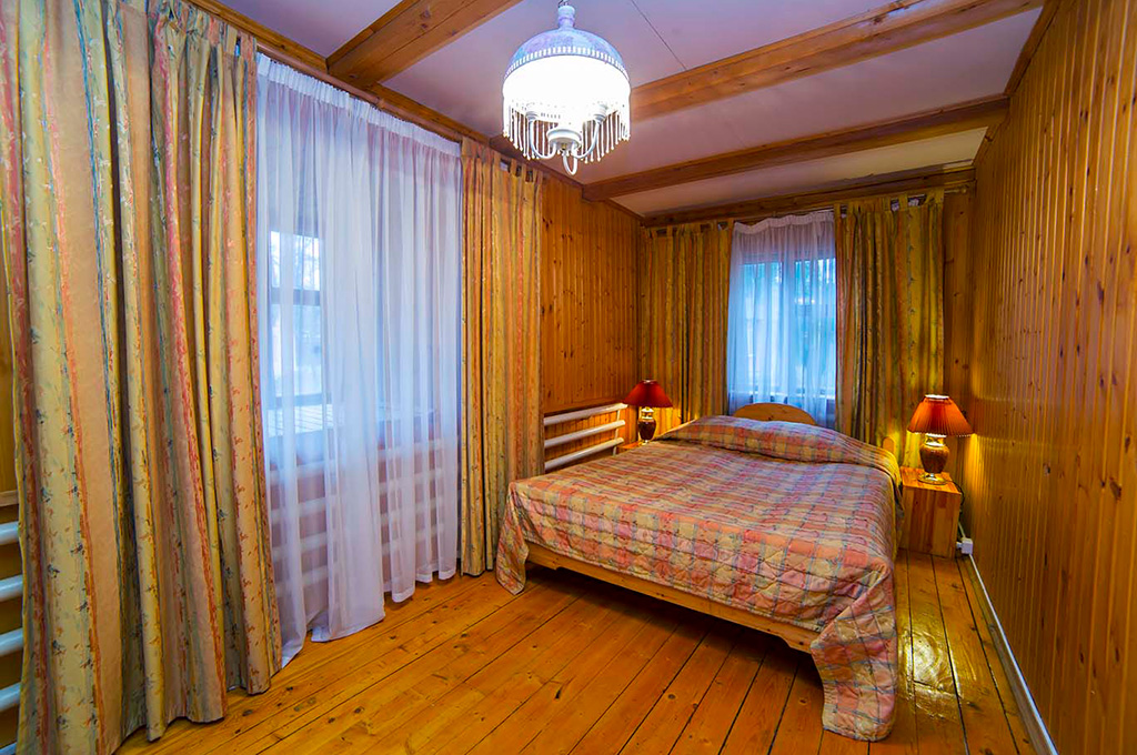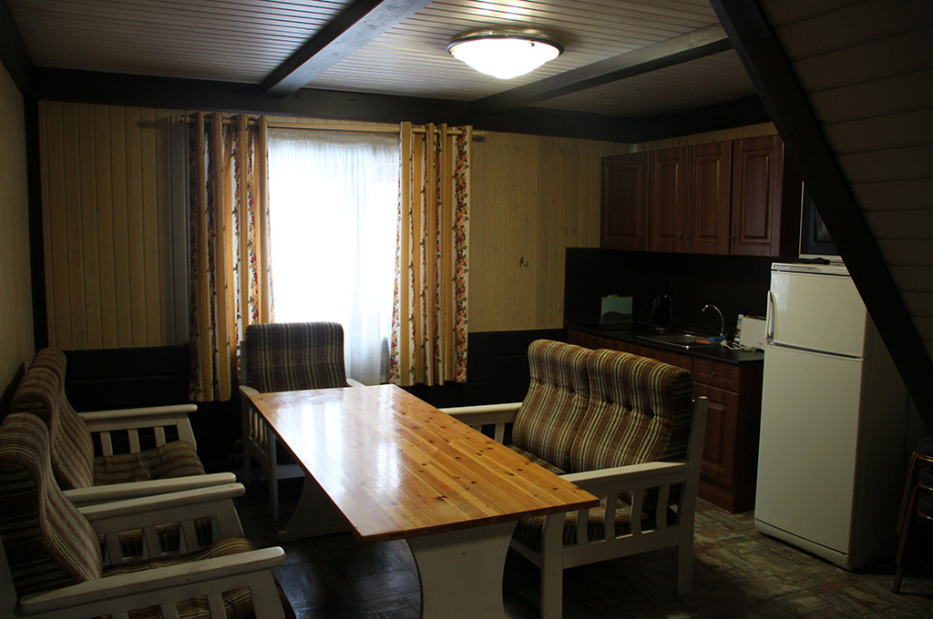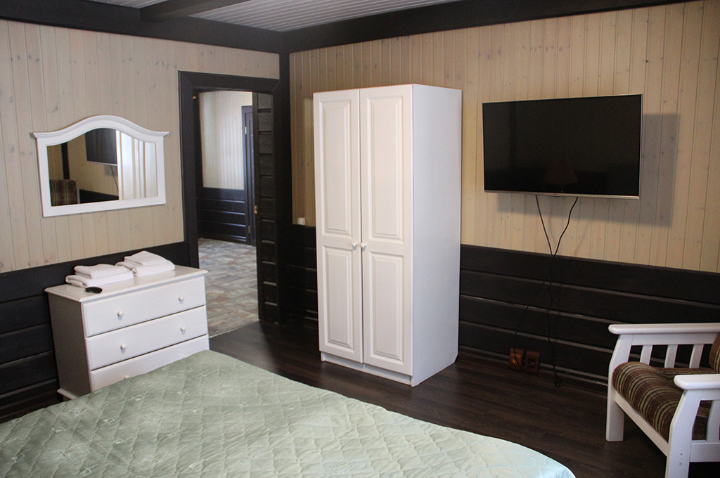 2-местный коттедж VIP. 2-этажный коттедж площадью 150 кв. м. Рассчитан на 2-х человек с возможностью приобретения дополнительных платных мест. Возле коттеджа располагается мангальная зона, качели, одно машиноместо.