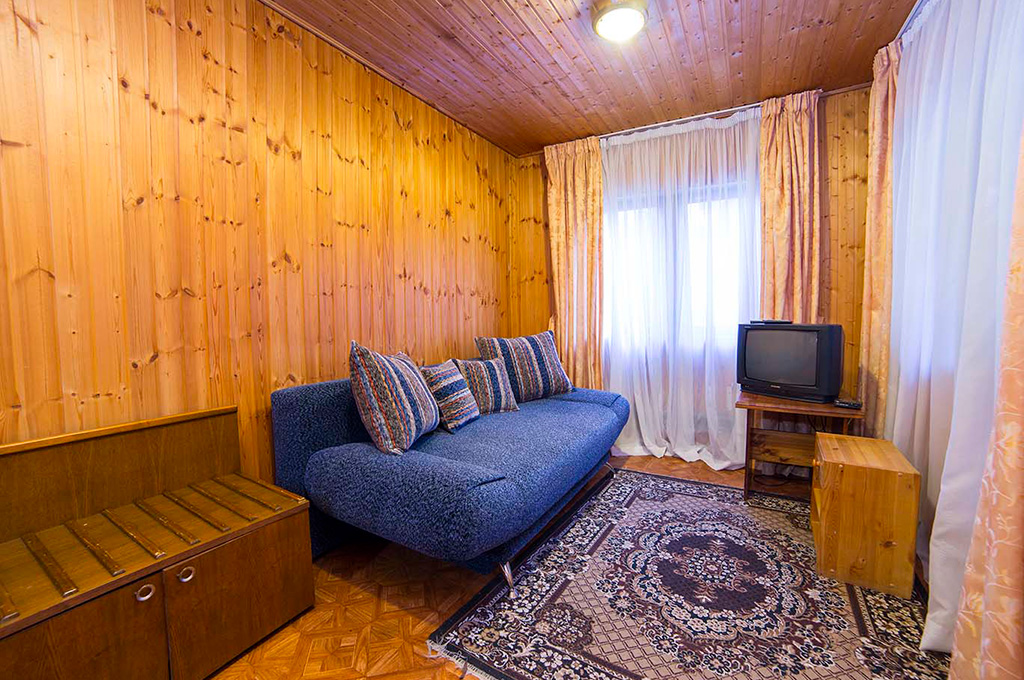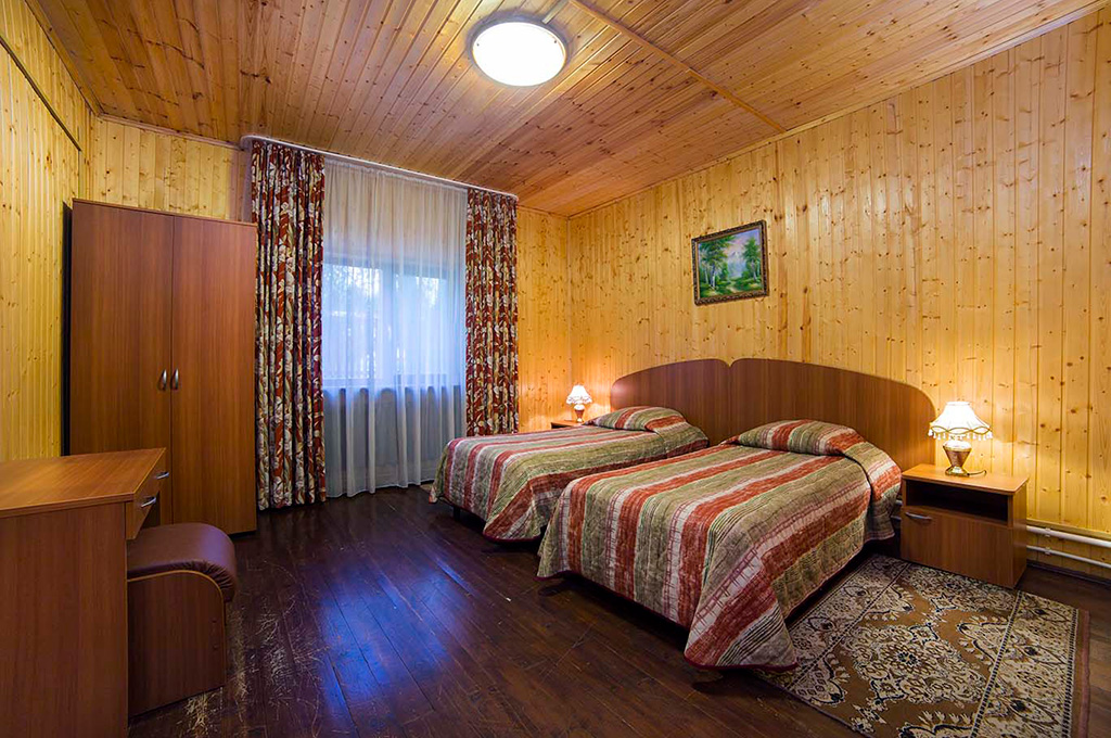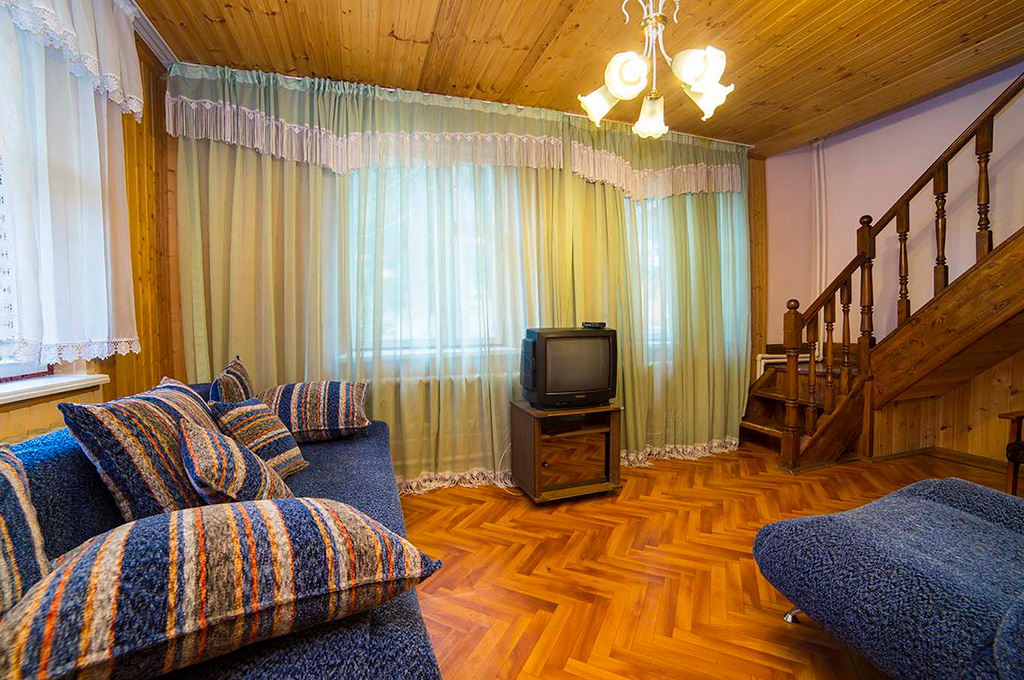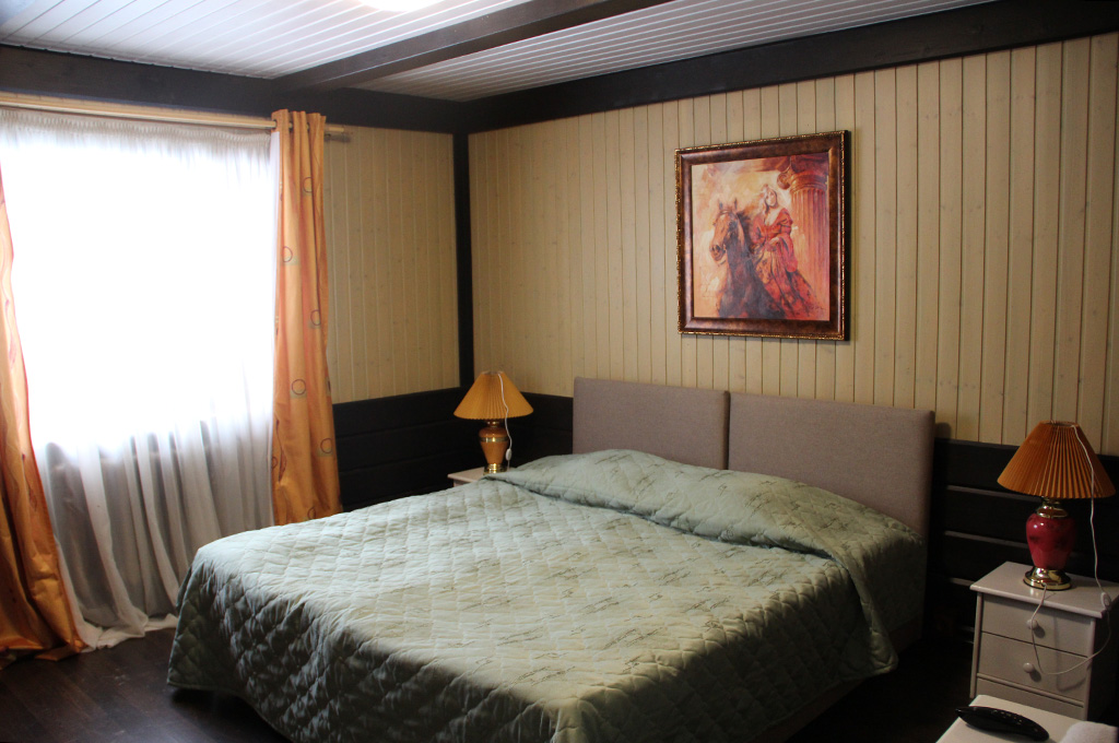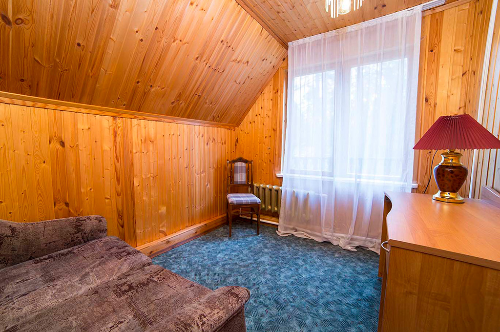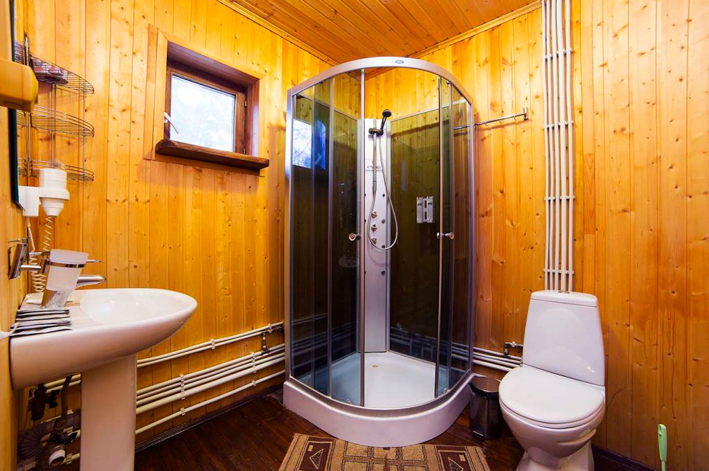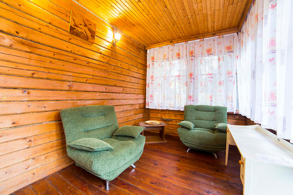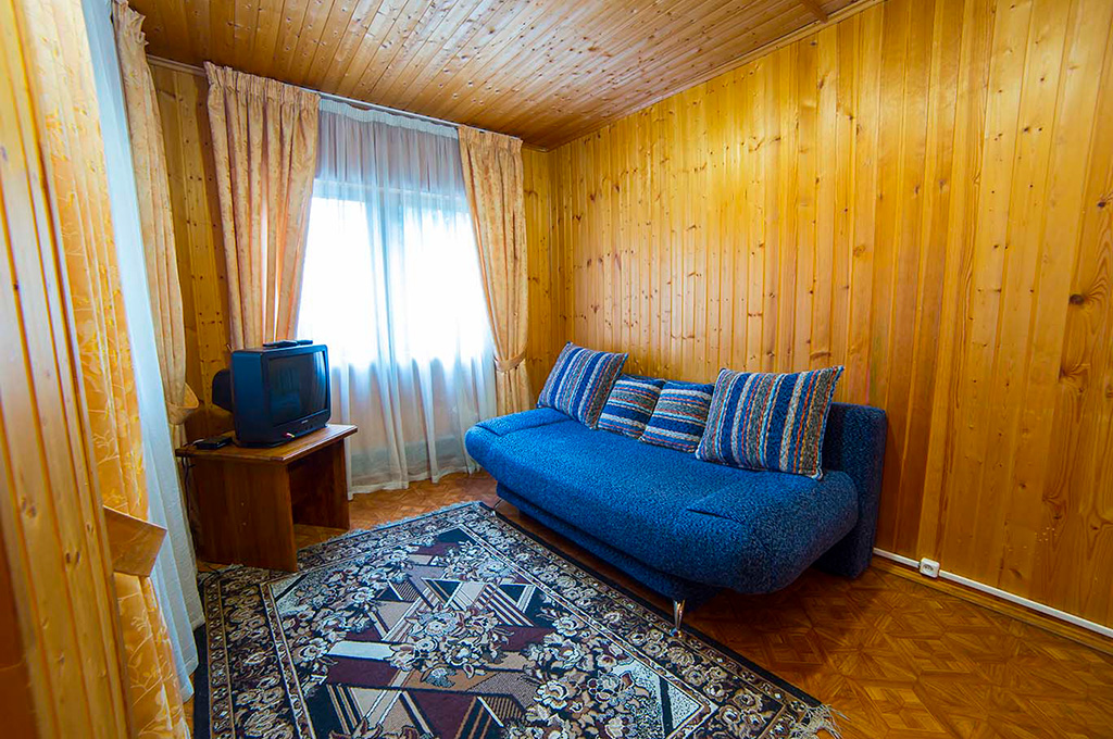 2-местный коттедж VIP. 2-этажный коттедж площадью 150 кв. м. Рассчитан на 2-х человек с возможностью приобретения дополнительных платных мест. Возле коттеджа располагается мангальная зона, качели, одно машиноместо.