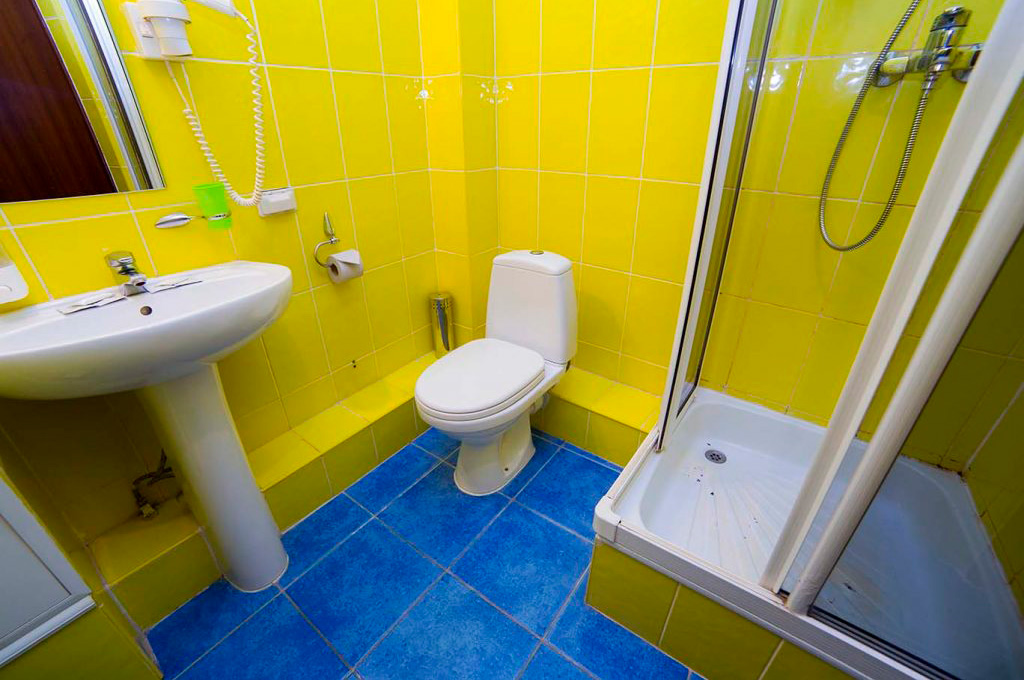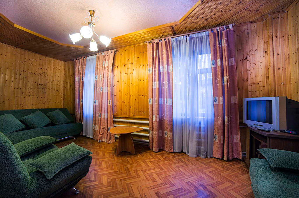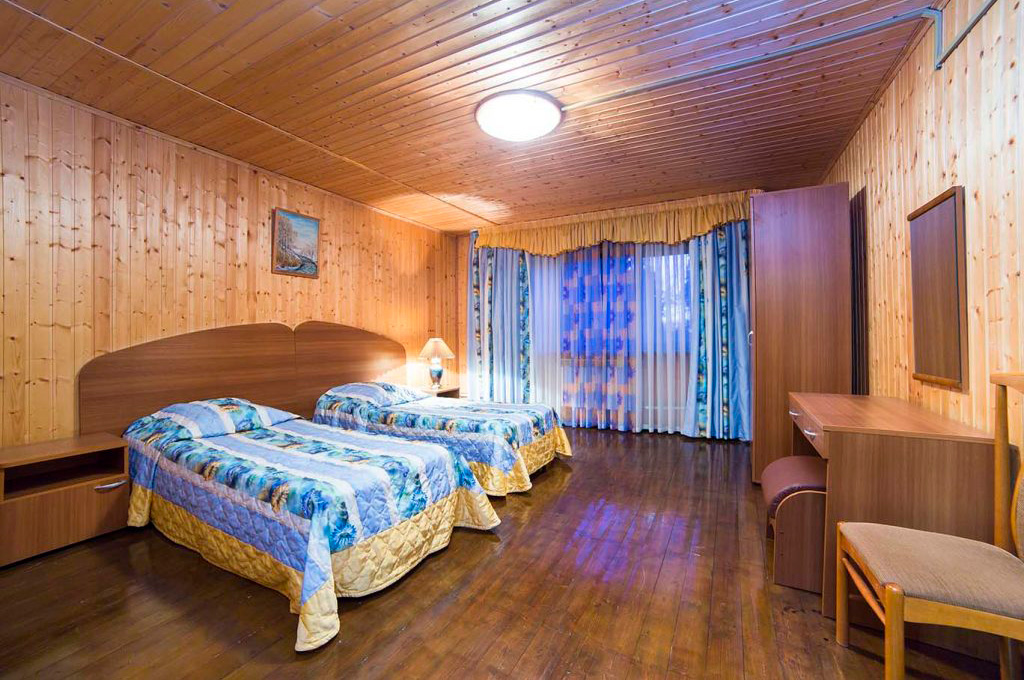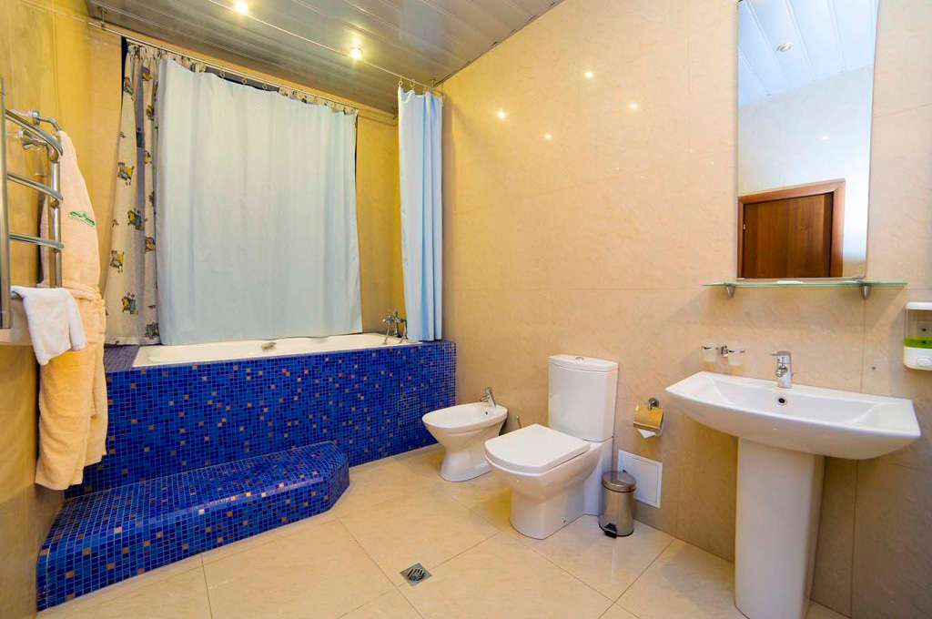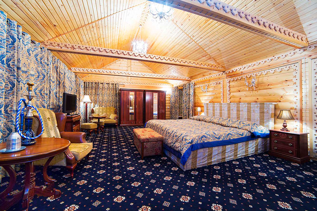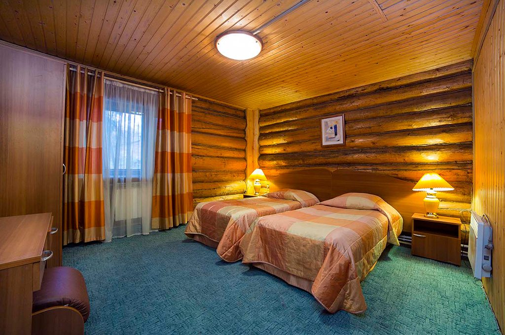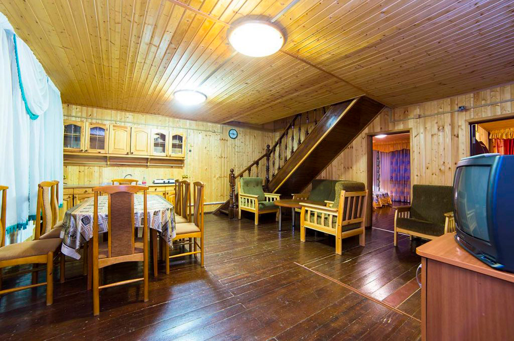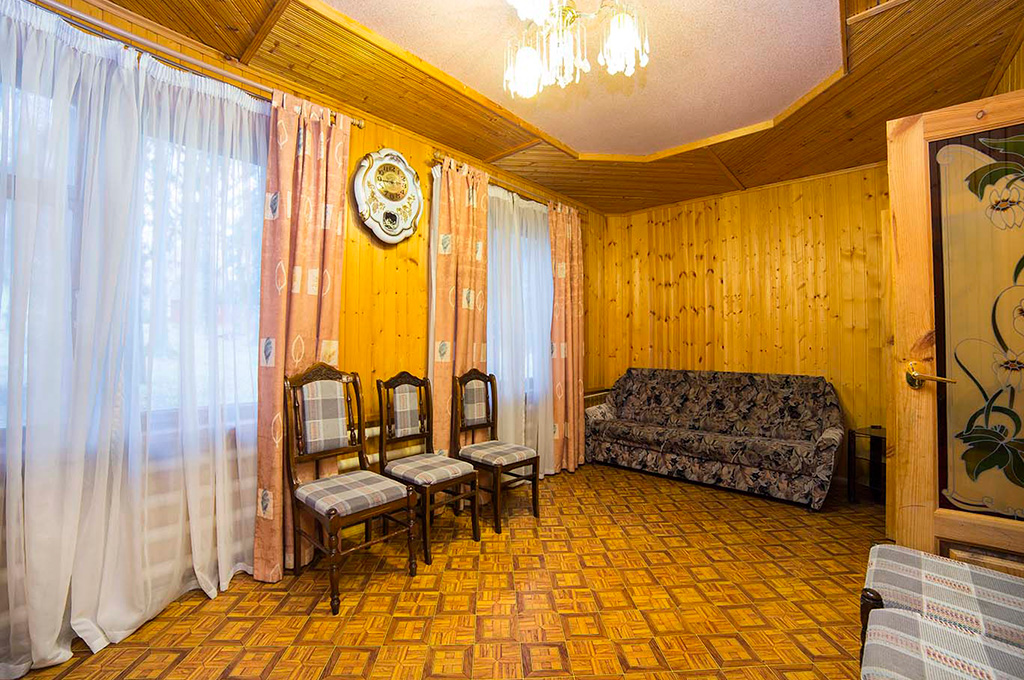 2-местный коттедж VIP. 2-этажный коттедж площадью 150 кв. м. Рассчитан на 2-х человек с возможностью приобретения дополнительных платных мест. Возле коттеджа располагается мангальная зона, качели, одно машиноместо.